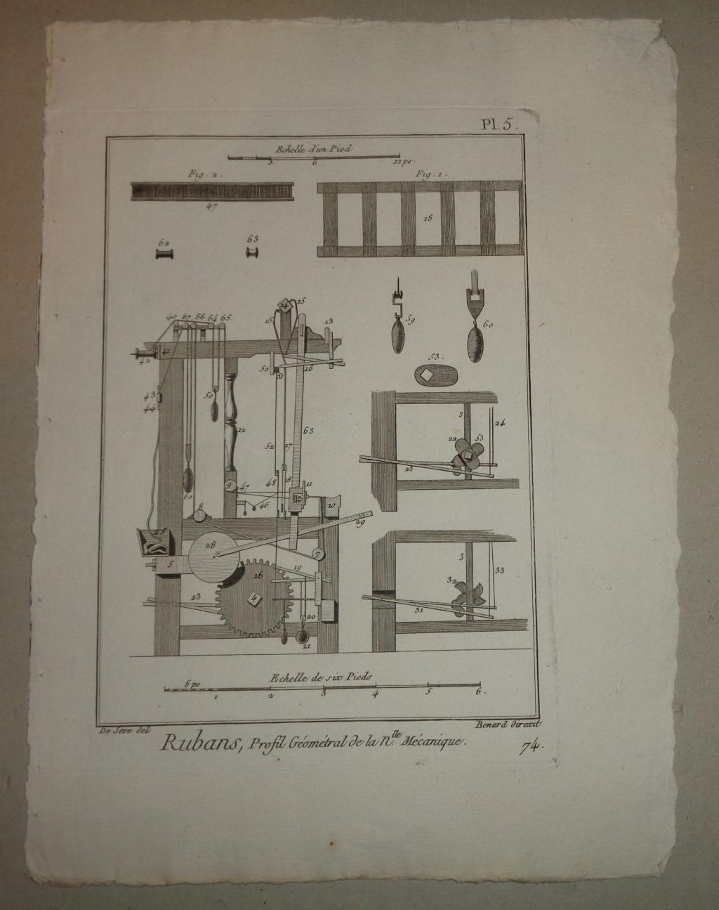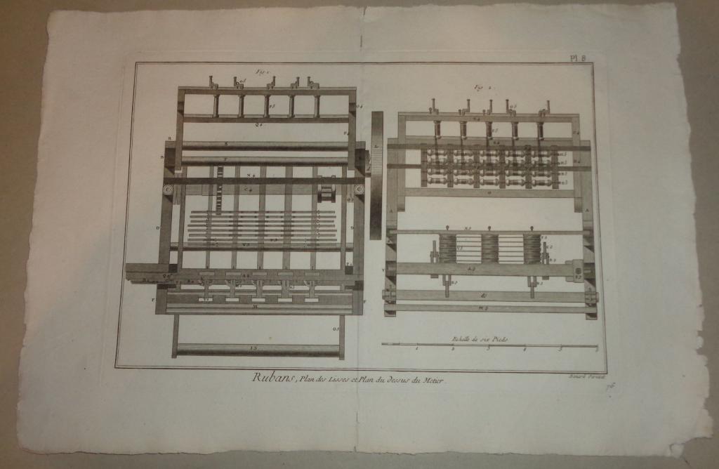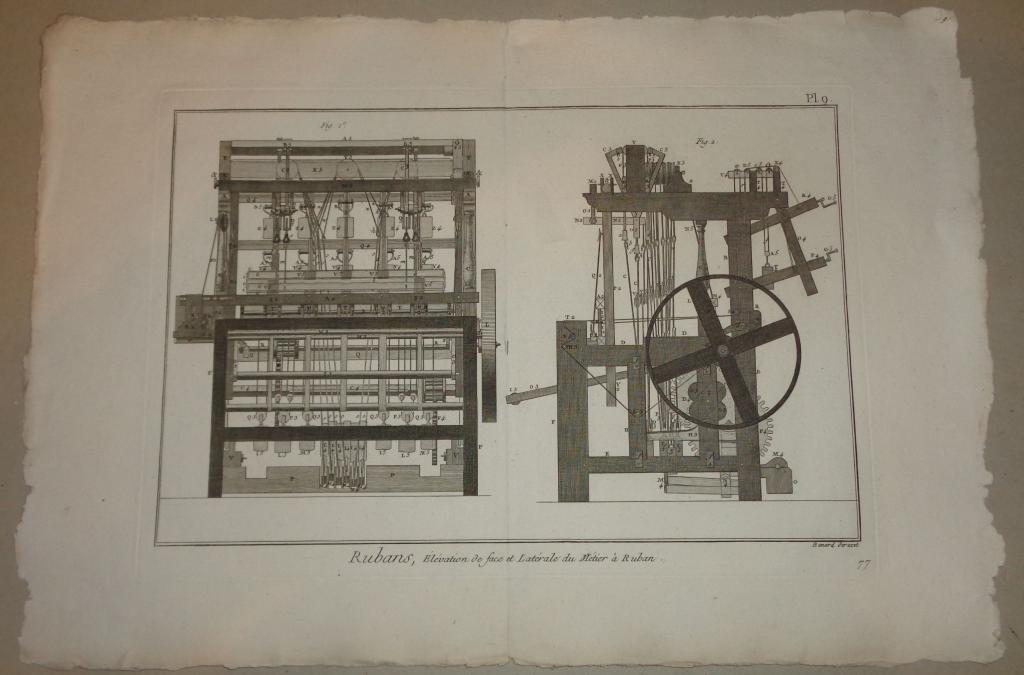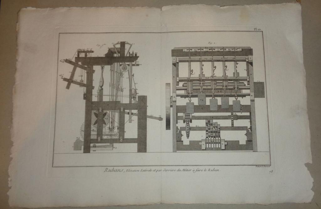 profession, industry history put into the basket Robert Bénard (1734–1777): Rubans (Métier à tisser à ruban) I-X. (Szalag szövőszék)-(Ribbon loom).