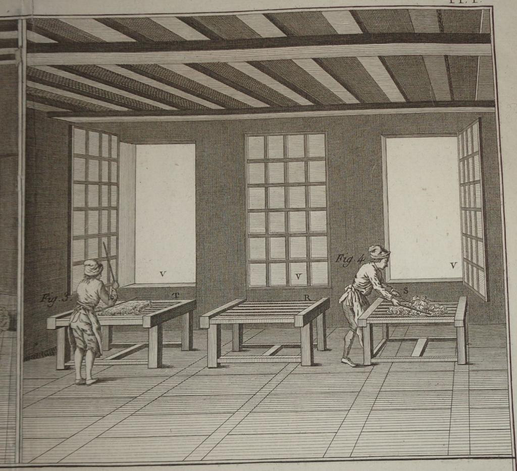 Az eredeti művet Párizsban adták ki 1751 és 1772 között, de a metszet későbbi változatokban is megjelent. A példányunk a Panckoucke-féle Encyclopédie méthodique-ban, az 1780-as években került kiadásra.