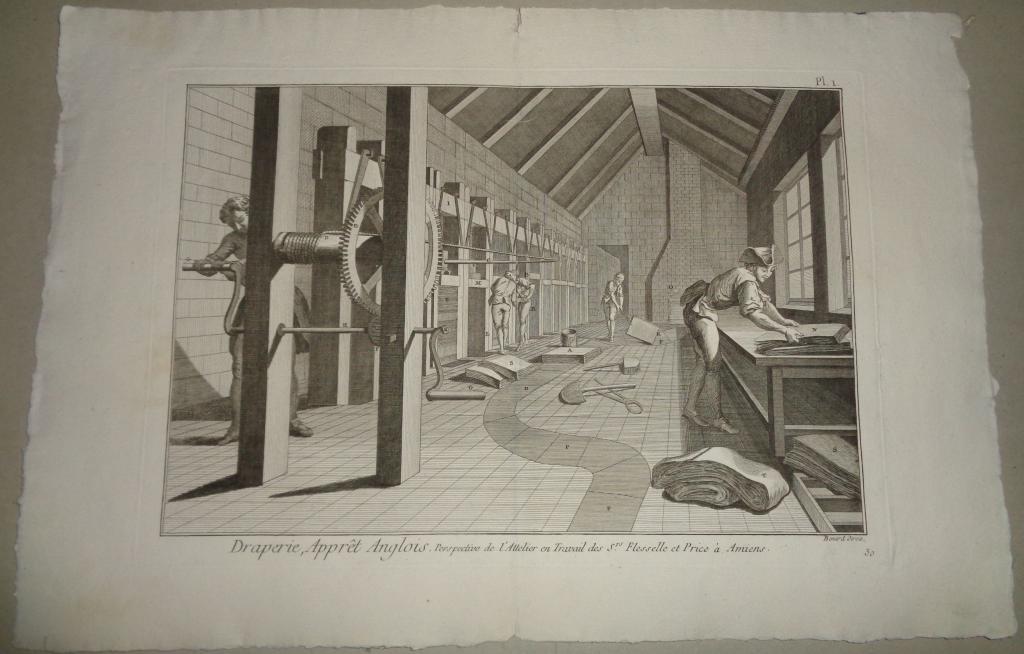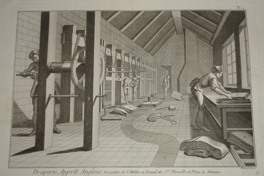 profession, industry history put into the basket Robert Bénard (1734–1777): Draperie, Apprêt Anglois. I-V. (Angol kikészÃtés, a szövet készÃtés befejezÅ‘ folyamata)-(Drapery, English Finishing or Cloth Finishing Workshop).