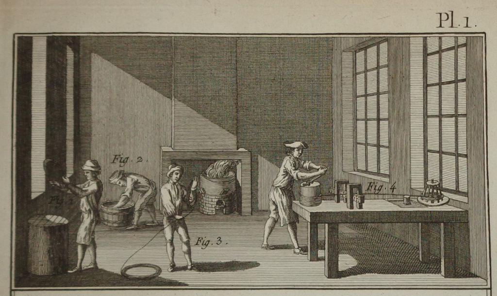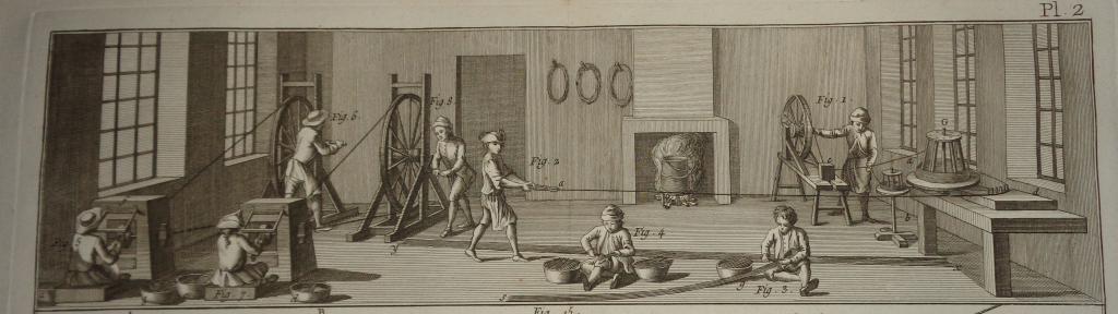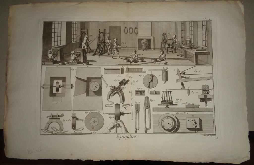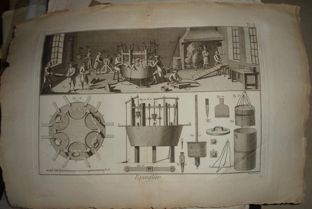 Az eredeti művet Párizsban adták ki 1751 és 1772 között, de a metszet későbbi változatokban is megjelent. A példányunk a Panckoucke-féle Encyclopédie méthodique-ban, az 1780-as években került kiadásra.
