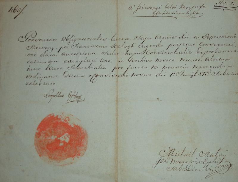 Adós levél harmintz Foréntról... Balog Ferenc felvett a szécsenyi belső keresztfa tatarozására felvett.