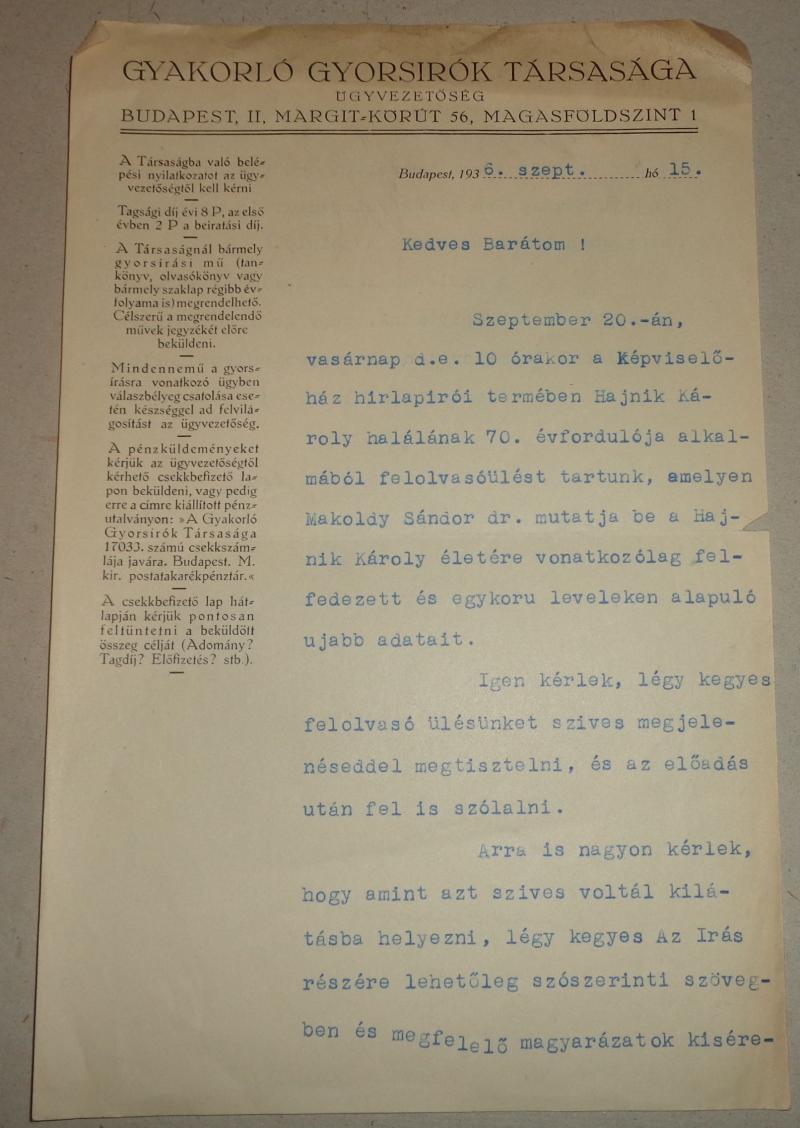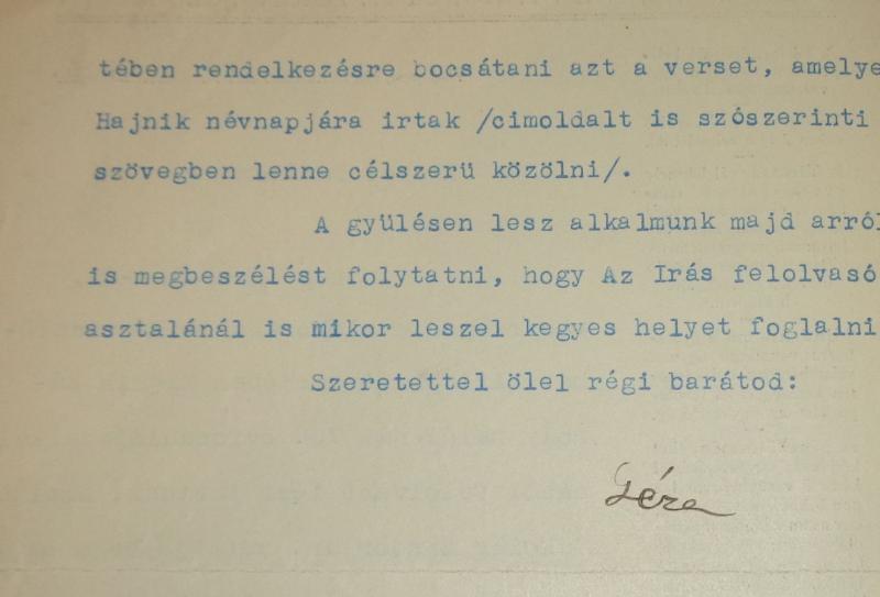 [Téglás] Géza levele valószínűleg Siklóssy Lászlónak.