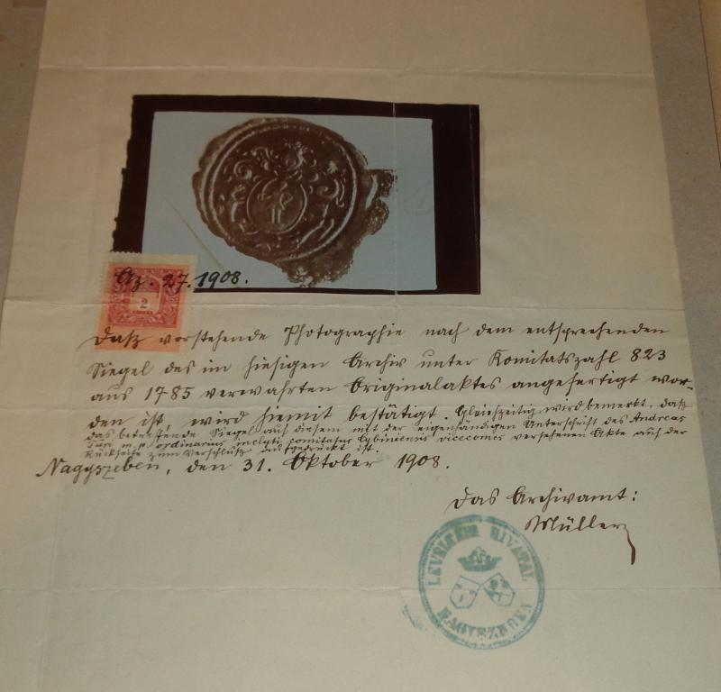 Családi pecsétekről készült igazolás 2pld. (Talán Árkosy).