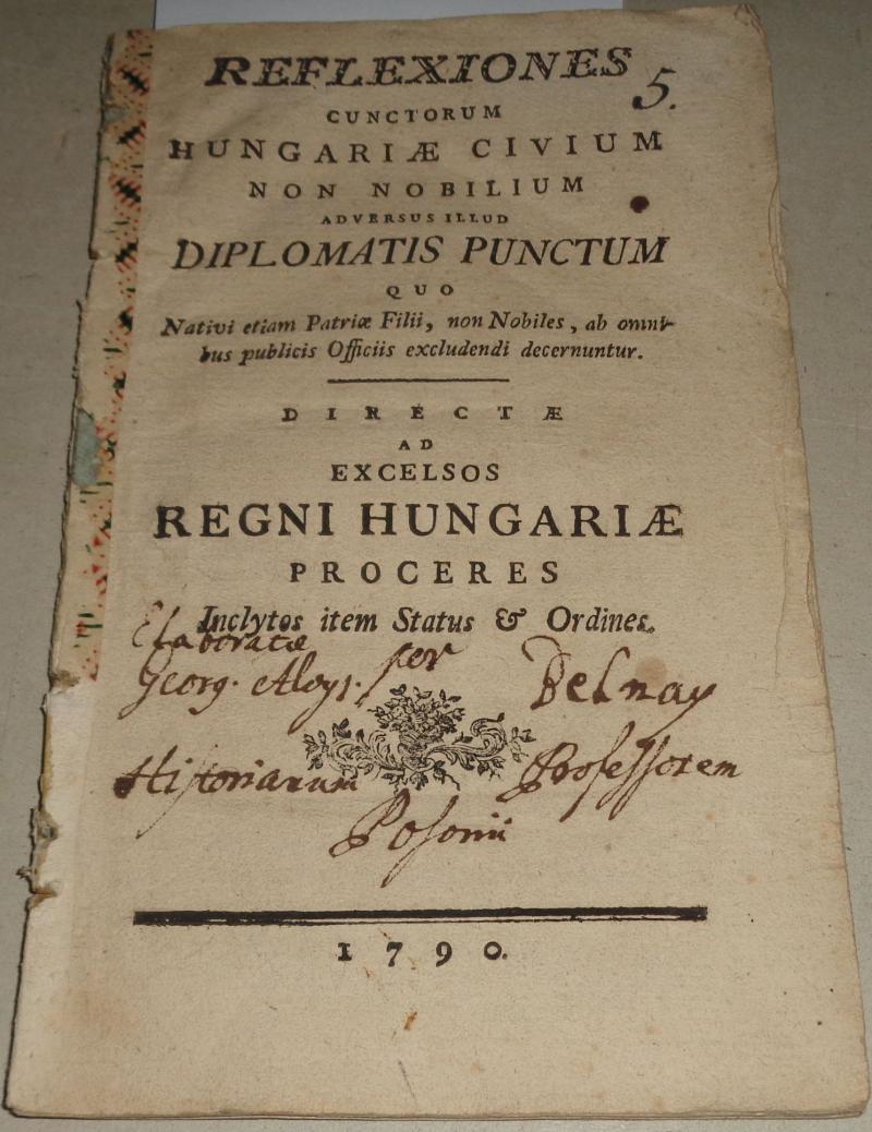 régiség berak a kosárba (1765-1809)], [Belnay György Alajos: REFLEXIONES CUNCTORUM HUNGARIAE CIVIUM NON NOBILIUM ADVERSUS ILLUD DIPLOMATIS PUNCTUM QUO NATIVI ETIAM PATRIAE FILII, NON NOBILES, AB OMNIBUS PUBLICIS OFFICIIS EXCLUDENDI DECERNUNTUR : DIRECTAE AD EXCELSOS REGNI HUNGARIAE PROCERES INCTYTOS ITEM STATUS & O.
