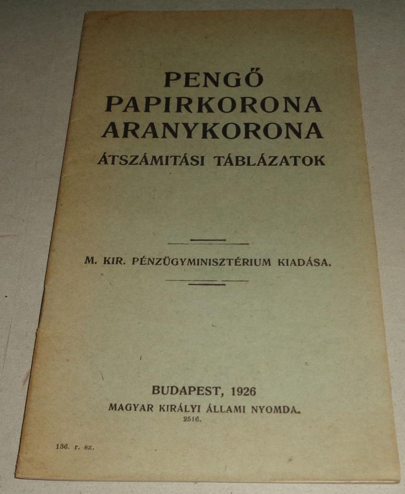 Pengő, papírkorona, aranykorona átszámítási táblázatok.