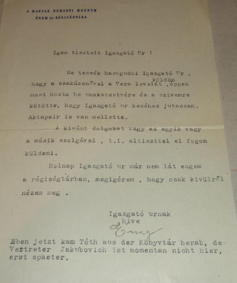 Ernyey József gépírásos levele [Varjú Elemérnek)