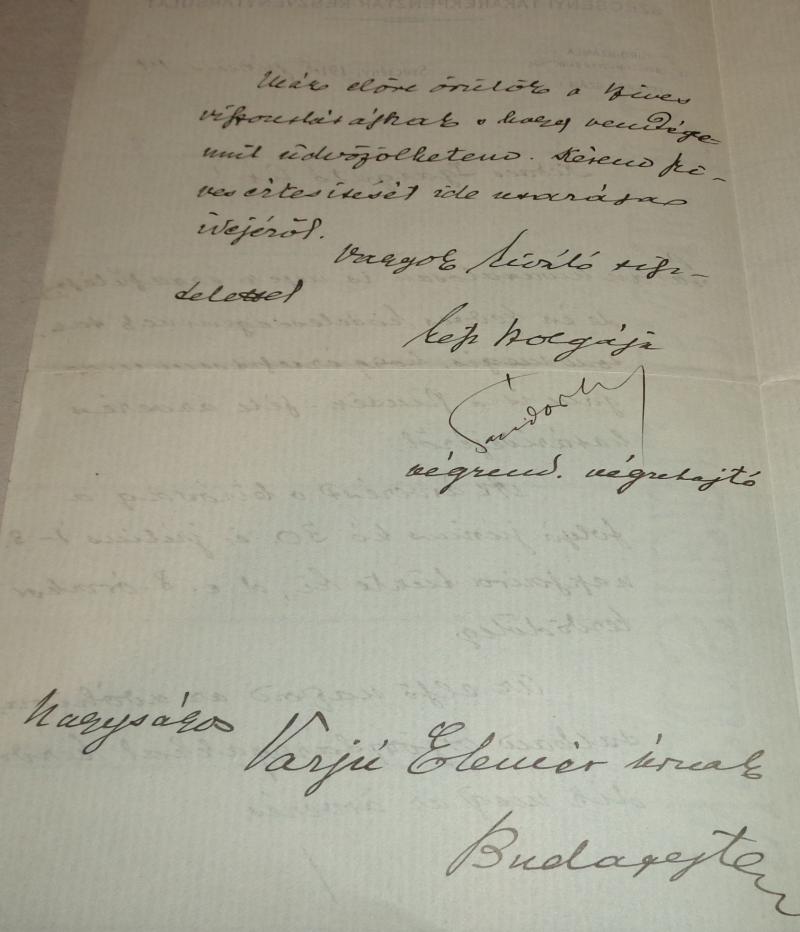 Egy szécsényi végrehajtó levele Varjú Elemérnek, melyben egy árverés időpontjáról tájékoztatja.