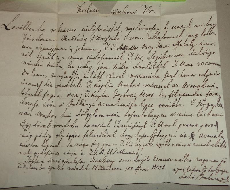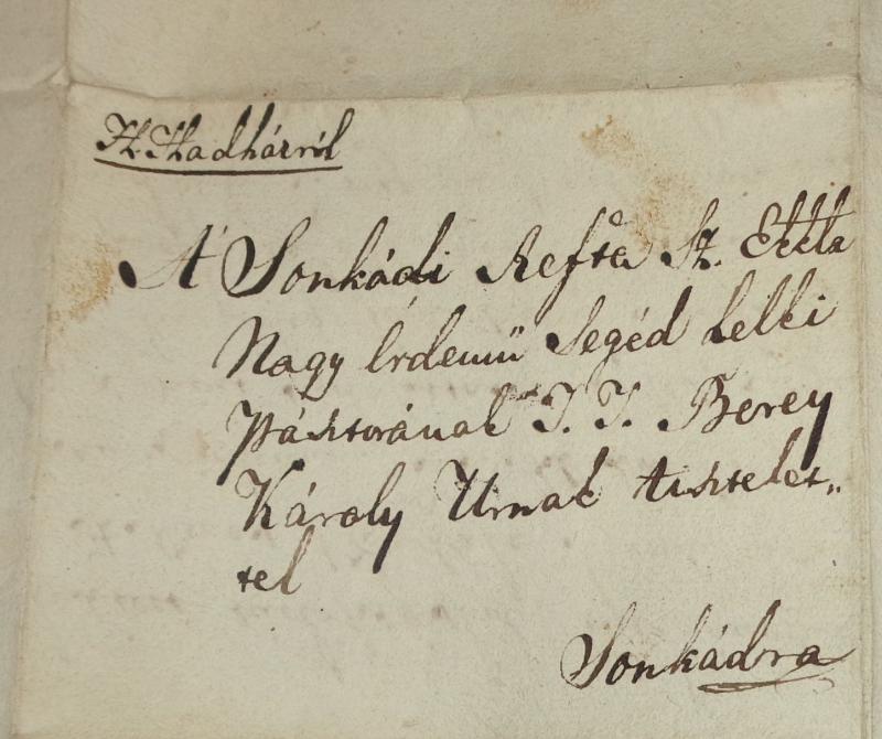 A hajdhadházi Szabó Bálint levele, a sonkádi Berey Károlynak.1839.