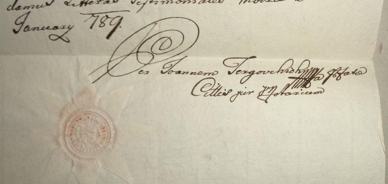 Ex [Consilio] Joannem Tergovchich ffata [prefata] Civitatis jur[atum] Notarium.