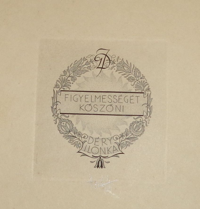 Woyty-Wimmer, Hubert 1901-1972: Figyelmességét köszönöm. Déry Ilonka.