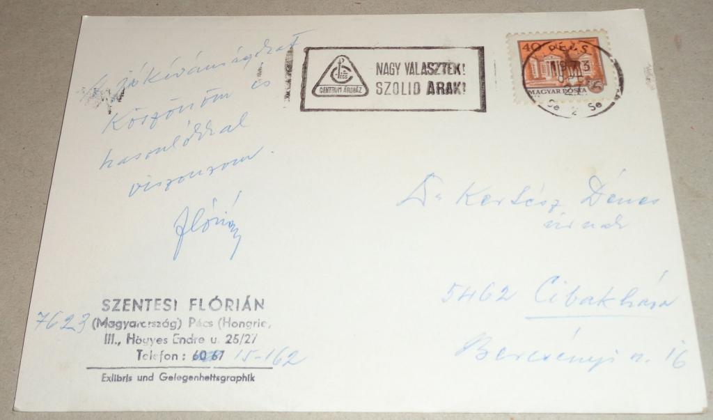 Szentesi Flórián a neves kisgrafika gyűjtő küldte, a szintén híres Kertész Dénes gyűjteményébe.